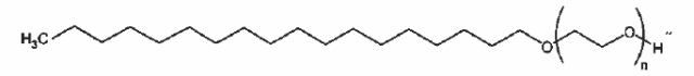 举例:鲸蜡硬脂醇聚醚-10;INCI名称:CETEARETH-10;别名:AEO-10;鲸蜡硬脂醇聚氧乙烯醚-10。白色蜡状体,不溶于水,HLB值为12.9。
