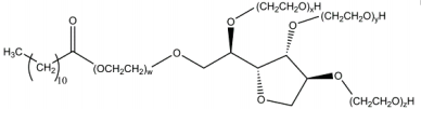 典型的代表原料为聚氧乙烯失水山梨醇酯(Tween),又称为:聚山梨酸酯、吐温,为司盘和环氧乙烷的缩合物,由于其分子中有较多的亲水性基团一聚氧乙烯基,故亲水性强。包括T-20/21/40/60/61/65/80/81/85。